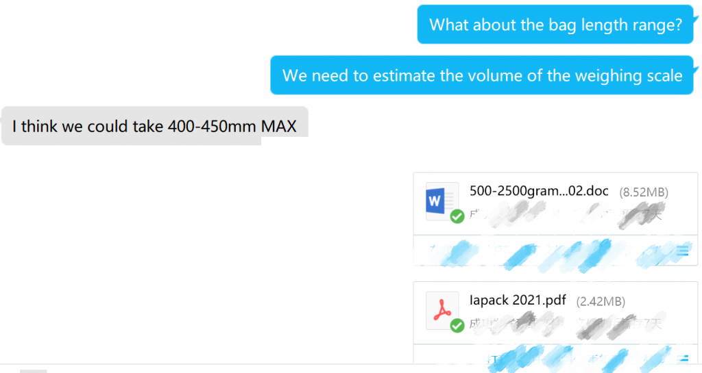 Após confirmar o tamanho da sacola e a gravidade específica do material, forneça ao cliente um orçamento: