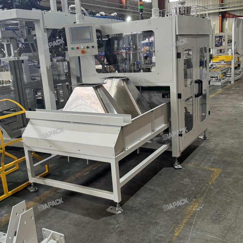 This unit consists of a bag storage bin, bag taking and sorting device, bag loading robot, bag clamping and unloading device, bag pushing device, bag mouth guide device, vacuum system and control system.