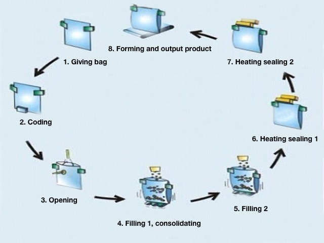 | Capacidade | 25-60 sacos / min para bolsa comum 8-25 sacos / min para o saco com zíper (A velocidade depende do status do produto e peso de enchimento) |