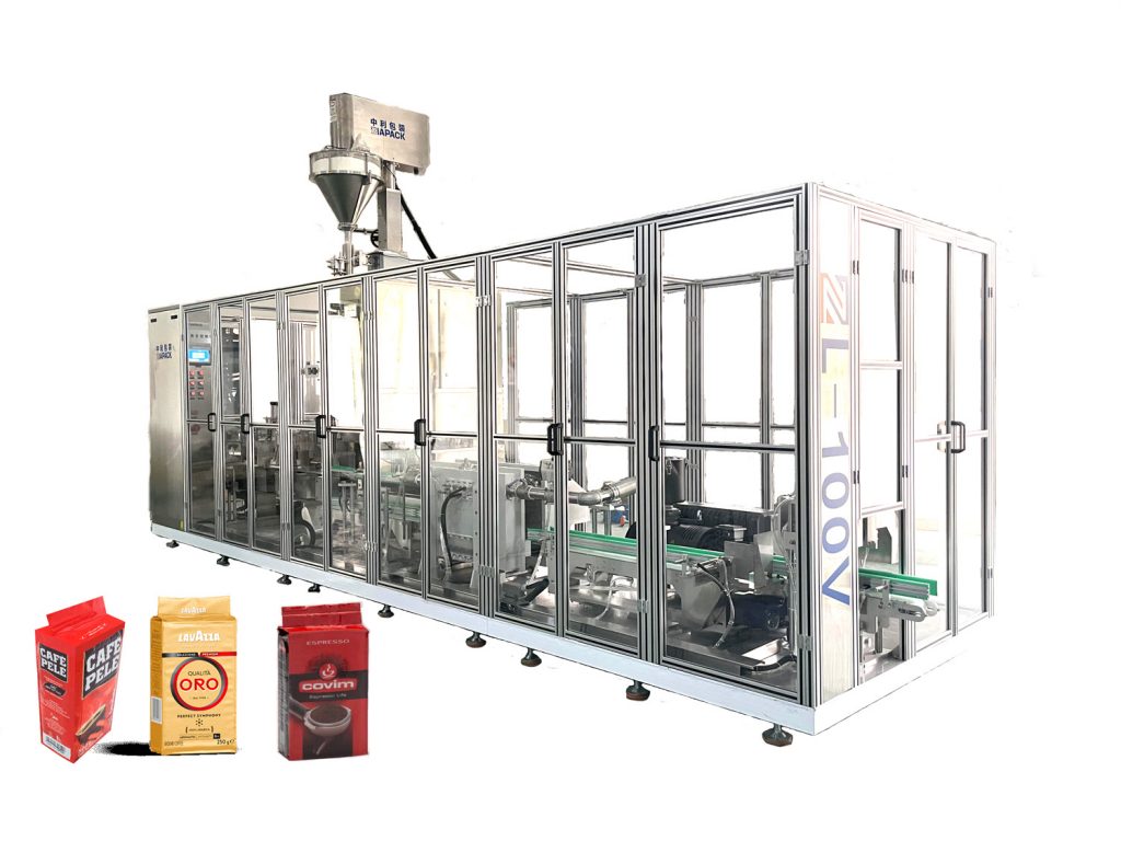 Esta máquina inclui um conjunto ZL520 vertical saco que faz a máquina de embalagem e selagem. um conjunto ZL2000 máquina de pesagem de balde duplo, um conjunto ZL-100V máquina de embalagem a vácuo e um conjunto transportador de saída. Esta máquina é amplamente utilizada para a embalagem de produtos químicos de farmácia alimentar e outros produtos em pó ou grânulo pequeno. Como café em pó, fermento em pó e assim por diante. Toda a máquina adota o bombeamento interno para aspirar o produto. O grau de vácuo é muito alto e a velocidade de embalagem é muito alta, pode chegar a 15 sacos/min. O produto acabado é muito bom e tem uma longa prateleira vida.