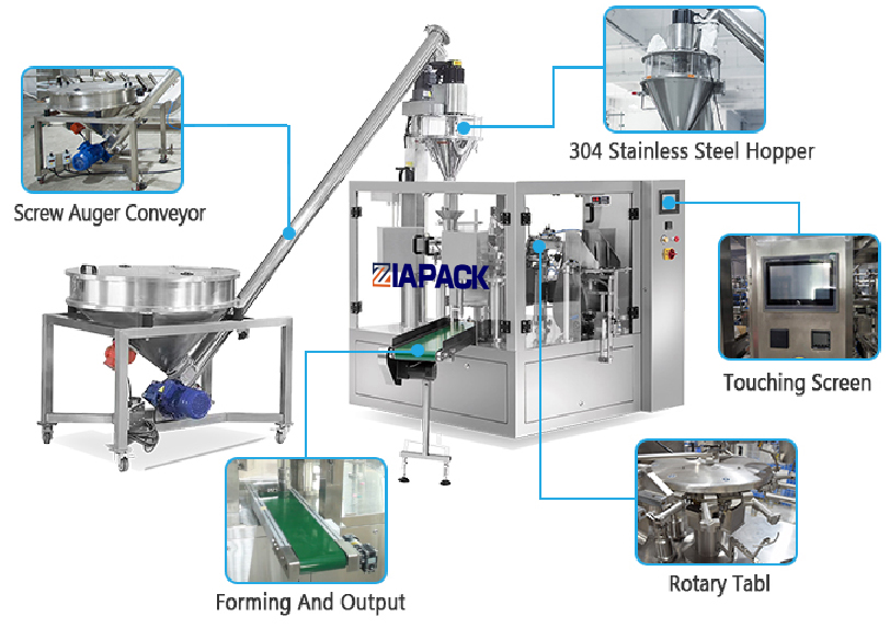 Esta máquina pode autoamtic levar o saco, abrir o saco, encher o material e selar o saco. Amplamente utilizado para embalagem de material em pó diferente.