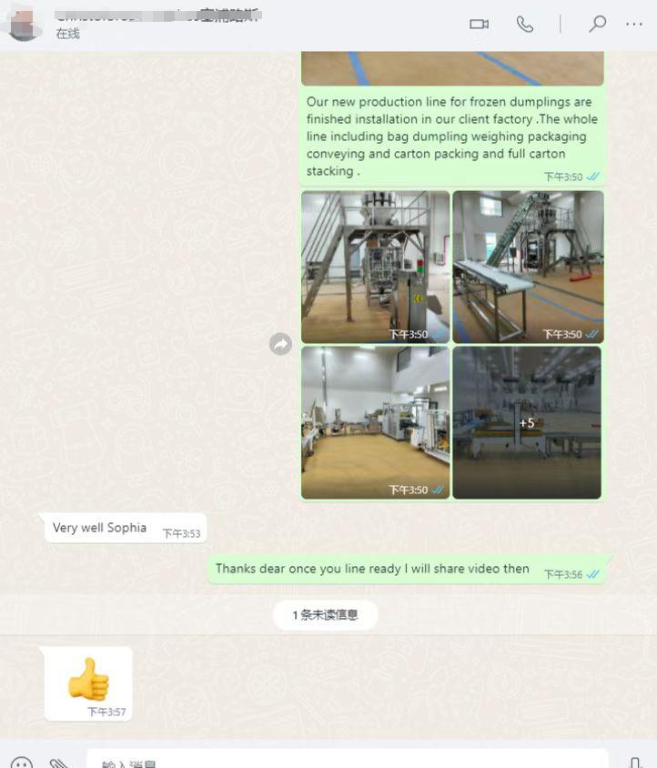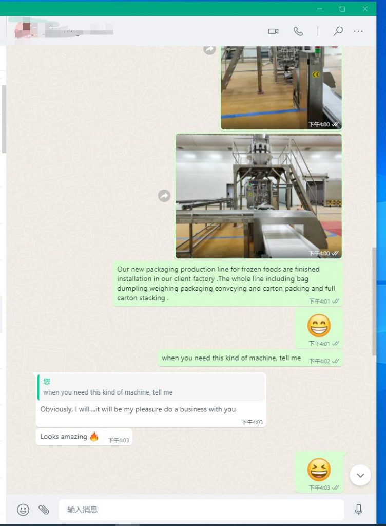Outra linha automática de empacotamento de sacos de alimentos congelados e envase de caixas de papelão foi instalada com sucesso na fábrica do cliente!