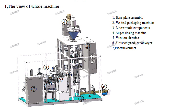Esta máquina de embalagem a vácuo pode realizar fabricação de sacos totalmente automática, remoção de sacos, alimentação, pesagem, vibração de material, modelagem, aspiração, selagem e entrega de produto acabado em um só lugar, e embalar materiais soltos em moldagem de peso fixo com alto valor agregado. O pacote hexaédrico. Esta unidade é amplamente utilizada na embalagem a vácuo de produtos de grãos, como grãos diversos de arroz e materiais em pó. Os sacos têm um formato bonito e um bom efeito de vedação, o que é conveniente para boxe, boxe ou varejo direto.